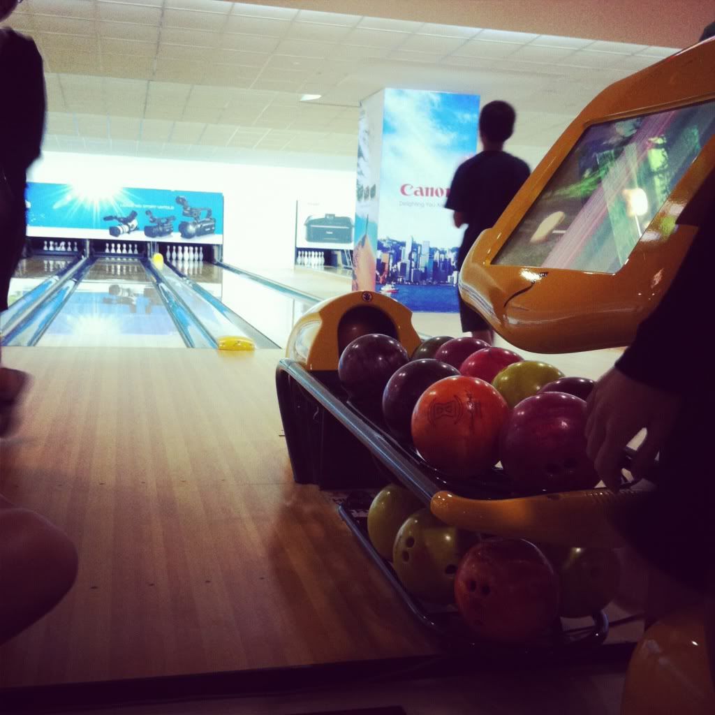 Last weekend before Internship commence, I went down for a bowling session with Aloy & his sibling/cousins!! His aunt had complimentary tickets so they invited me along ;) I've not bowled for eons & I must say, I was very much ashamed of my skills. WHERE WERE THE SKILLS I'VE AT WHILE I WAS YOUNG?! We played two rounds it lasted close to 3hours cause there were 8 of us together on a lane. Given that fact, I was unable to regain my skills while practicing. On the other hand, Aloy who hasn't played bowling before, well, beat every each and one of us, hands down.